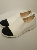 人工皮革 つま先配色 黒は黒 白は黒 軽量 サイズは22.5cmから24.5cm 5mm刻み 3色展開 受注にて承ります。