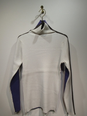 リブタートルニット 配色 肩から袖山のラインも配色になります トップの写真の色の前身ごろを基準にIDを分けました。 前後着用なので色を選んで着用できます、手洗い可能