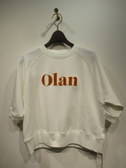 ※春物新作 6分袖で肘が隠れる長さ、ラグラン切り替え、裏毛、立体的なロゴ(白はオレンジ・黒は濃いめのブルーグリーン)、短丈、手洗い可能