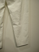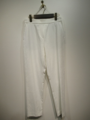 ウェストゴムのテーパードパンツ、祖座は麻混入り、脇ポケット、手洗い可能