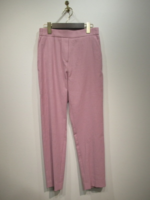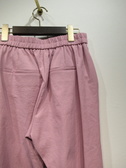 ウェストゴムのテーパードパンツ、祖座は麻混入り、脇ポケット、手洗い可能
