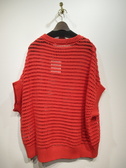 ビッグシルエットの透かし網ニット、ドルマンスリーブ、袖は肘ぐらいまで、襟ぐり・裾・袖口リブ、前上がり、手洗い可能