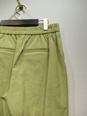 ウェストゴムのテーパードパンツ、祖座は麻混入り、脇ポケット、手洗い可能