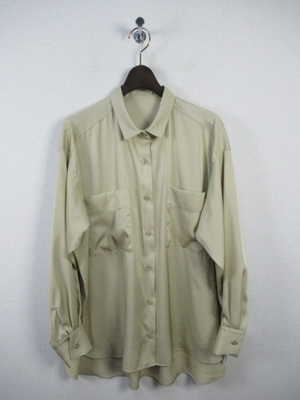 ポリエステルサテン地 ドロップショルダー 小さめの衿 後ろタック有り 手洗い可能