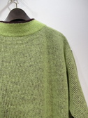 編地が表面は黄緑 裏地はボルドー(表裏で糸を変えてるので編んだ時に色が両面で違う) レイヤードデザインニット 左脇でリボン結び 袖筒広め