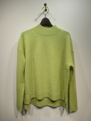 ハイネック ドロップショルダー 裾はフロントアーチ ネック、袖口 裾はリブ編み