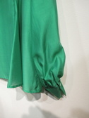 裾広がりのノーカラーブラウス、袖肩にギャザー、袖筒はやや広め、袖口カフス(ギャザー寄せ)、手洗い可能