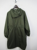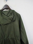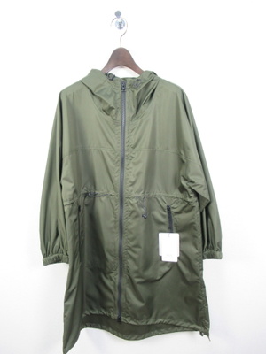 ポリエステル100%の撥水加工を施したコート フード襟 ファスナー ウエスト部分と裾、フードに紐調整 袖口ゴム 手洗い可能