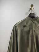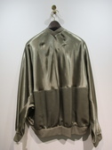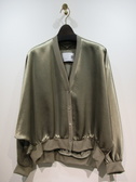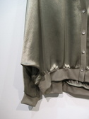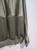 光沢のあるサテン生地 Vネックのブルゾン ラグランスリーブ 後ろ長め 背中途中に切替あり 袖口 前たて 裾はリブニット 裏地なし 手洗い可能