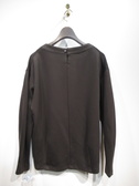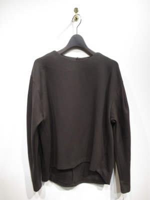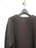 定番のアクリルレーヨンのカットソー ドロップショルダーで袖山タック入り 裾は前後差が有り フロントアーチ型 後ろの裾にタックが入りややコクーンシルエット ネック後ろゴールドのボタン 手洗い可能