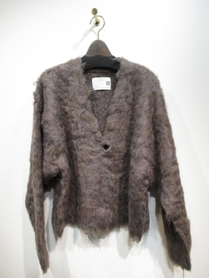 シャギー素材 Vの開きざっくりデザインのカーデ ドロップショルダーでアーム広め 手洗い可能
