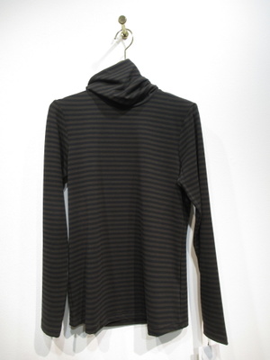 インナータートルカットソー ボーダー柄 ダークブラウンは紫 ミディアムグレーは黒 手洗い可能