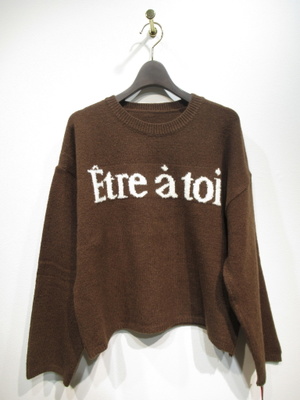 ドロップショルダーのロゴ入りニット