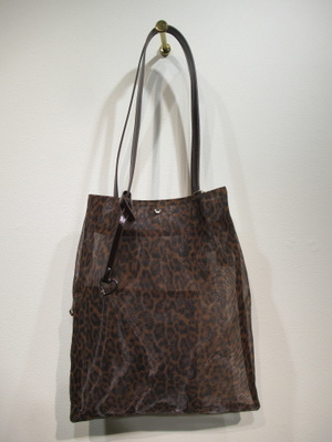 透け感のトートバッグ アニマルプリント 横からファスナーのある 内ポケット キーホルダー付き