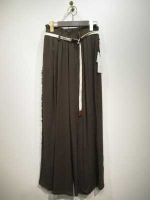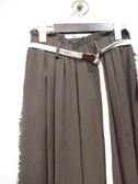 レーヨンポリの落ち感のある生地 ウエスト幅広ゴム ギャザー寄せ 脇ポケット 裏地はヒップ辺りまであります サッシュベルト付き 脇ラインはフリンジ 手洗い可能 ※アイスグリーンのみ股下66cmでやや長め