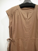 ハイウエストで切り替え 共生地の細いリボンでギャザー寄せして両サイドリボン結び スキッパー襟 スカート部分ティアード ペチコートつき 手洗い可能