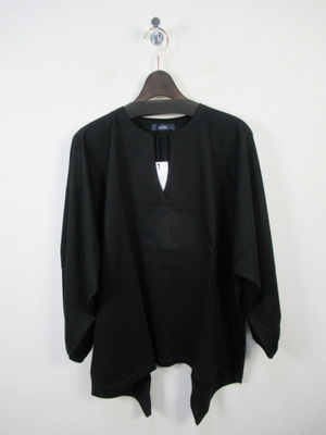 スキッパー ざっくり緩めのシルエット ラグラン袖の長袖 袖口ゴム 後ろ下がり 後ろ身頃に中央で切り替えその下は打ち合わせデザイン 手洗い可能
