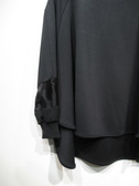 ラグラン切り替えの長袖 身幅広め 袖の途中異素材(同色オーガンジー生地)使用 袖口リブ 裾は前が短い ラウンドデザイン 手洗い可能