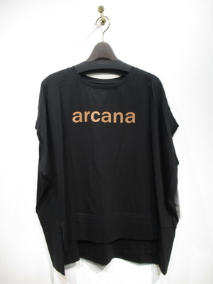 ID:118086と同じ形、ロゴのカットソー、グレーにブルー・黒にブラウンのロゴ、ざっくりとビッグシルエット、前後差あり、両脇スリット、手洗い可能