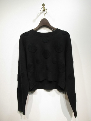 ドロップショルダー 裾は短め 大小のパイルドット(編地違い)