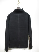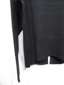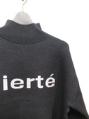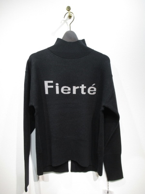 ドロップショルダー ハイネックのロゴ入りニット 後ろ下がり 後ろの中央裾スリット 手洗い可能