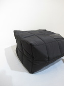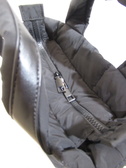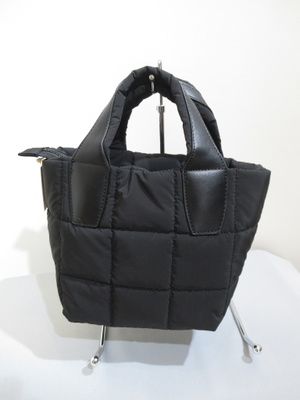 キルティングのコンパクトなバケツ型バッグ、天ファスナー(ダブルジップ)、グログランのショルダーベルト付き