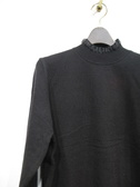 ハイネックの襟ぐりと袖口がラメのフリル、裾リブ、手洗い可能