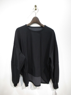 裏起毛、前後差かなり有ります、フロント裾はアーチ型、ドロップショルダー、袖の中心あたりに切り替えあり、ボリュームのある袖、襟ぐりと袖口はリブ、手洗い可能、ID:118506と同素材