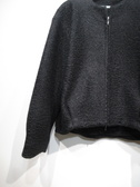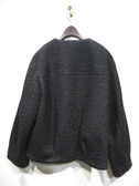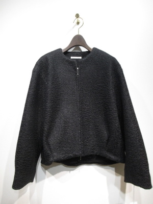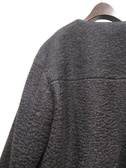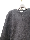 コクーンシルエットの襟なしブルゾン型コート、フロントシルバーファスナー、ダブルジップ、裏地付き、ドロップショルダーで袖口もコクーン、手洗い可能