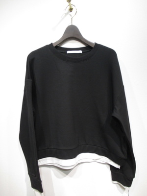 クルーネック ドロップショルダー 裾と袖口異素材(白生地)を合わせてます 手洗い可能