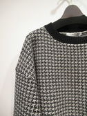 細かい白黒の柄模様 ドロップショルダー 裾は短め 袖口 裾 襟ぐりは黒のリブ 裾はスリット入 手洗い可能