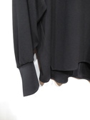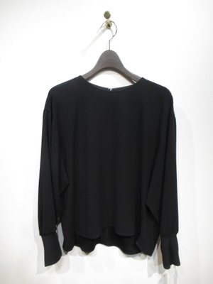 ※春物新作 クルーネックオーバーブラウス とろみのある生地なので落ち感がある 前後差が有り ドロップショルダーなので身幅は広め 袖口は幅広の異素材リブ 裾脇3cmほどのスリットいり 後ろネックラインのところにカギホック(着脱用)手洗い可能( ID:118806のグレージュと黒はセット可能)