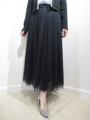 ※春物新作 ウエストギャザーゴム チュール2枚重ね 裏地はサテン地(裏地両サイドにスリット入り・23cm) 手洗い可能