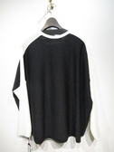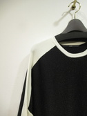 ※春物新作 身頃はラメ入りニット、肩から袖にかけて異素材のリブ網、身幅広め、前後差あり、手洗い可能、リブはどちらも同じオフホワイト