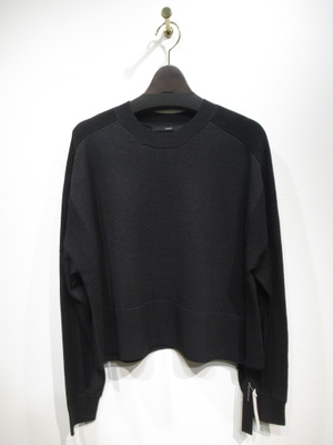 ※春物新作 ドロップショルダー、身幅広めの長袖ニット、やや短丈、裾・襟ぐりから袖山にかけて・脇ラインがリブ、手洗い可能