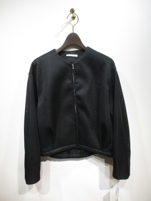 メッシュ生地のブルゾン、前後差有り、コクーンシルエット、ID:118816と同じ素材を使用していますがこちらのブルゾンのほうが身幅はすっきりとしています、裾は総ギャザーゴム、前ファスナー(シルバー)手洗い可能