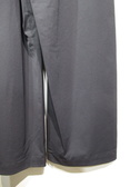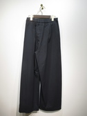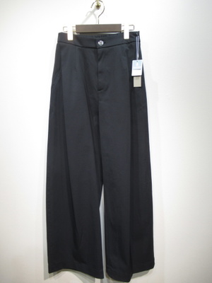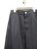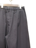 脇に近い部分のタックが入っている、太めのワイド、脇ポケットあり、裏地無し、前ファスナー、ウェスト後ろゴム、手洗い可能