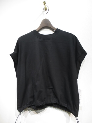 ID:119160のスカートとセットになります、フレンチスリーブのカットソー、裾はドロスト、袖口折り返し、襟ぐりリブ、手洗い可能
