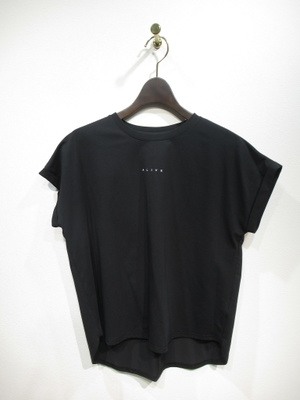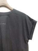 フレンチスリーブのカットソー、前後差ありで後ろ長め、袖口折り返し、フロントに小さいロゴ有り、手洗い可能