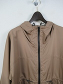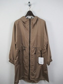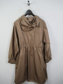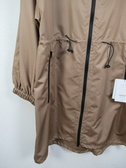 ポリエステル100%の撥水加工を施したコート フード襟 ファスナー ウエスト部分と裾、フードに紐調整 袖口ゴム 手洗い可能