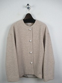 ノーカラー ジャージー生地 ざっくりコクーン型のショートコート ドロップショルダー 裏地付き 大きなパールボタン(飾り)内側にホック