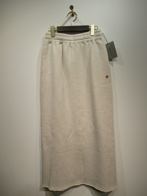 カットソーのタイトスカート、裏が起毛、ウェスト総ギャザーゴム、脇ポケットあり、後ろスリット入り(22p)、手洗い可能