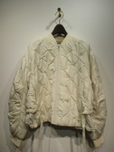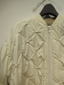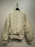 ひし形に変形キルティングデザイン(丸いデザインで中央をとめてます)フロントファスナー フロントポケットあり 裾後ろから脇辺りまで別布で2段に 裾はドロスト キルトの裾はリボンでしぼりができるデザイン 袖と襟ぐり リブ 薄く中綿入り(ポリエステル)