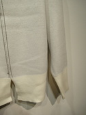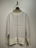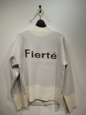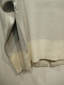 ドロップショルダー ハイネックのロゴ入りニット 後ろ下がり 後ろの中央裾スリット 手洗い可能