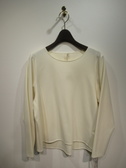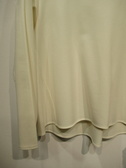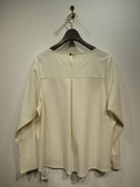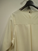 襟ぐり横に広め、後ろに着脱用のボタンあり、裾は前後差あり、後ろ身頃タック入り、手洗い可、裏地無し