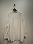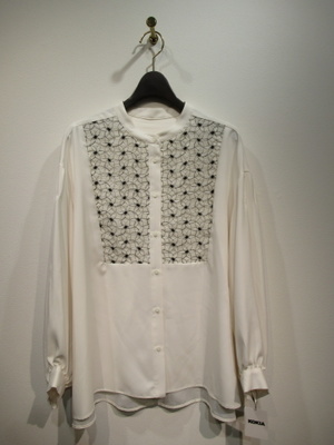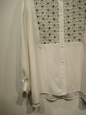 襟無し 前開きブラウス ドロップショルダー (袖口ギャザー+カフス) 脇スリット入り 前身頃シフォンに花の刺繍の生地を重ねてます)手洗い可能