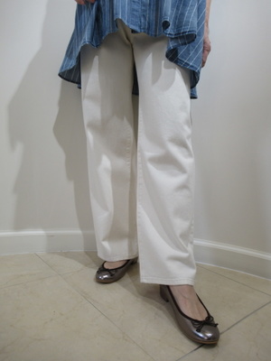 ※春物新作 ホワイトデニム、ソフトワイドシルエット、手洗い可能、綿100%ストレッチなし