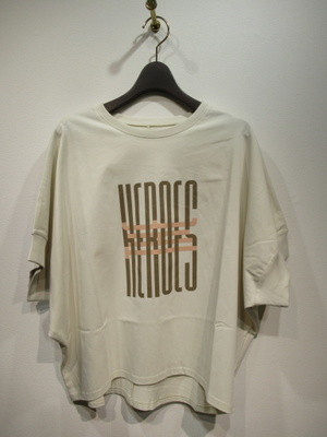 身頃からそのままドルマン袖(半袖) ロゴ入り 袖口襟ぐりリブ 後ろ裾丈長め 手洗い可能