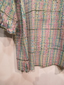 ブルーやピンクの色を織り交ぜた生地(イタリア製) パフスリーブ 手洗い可能