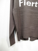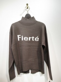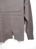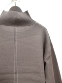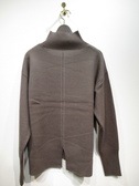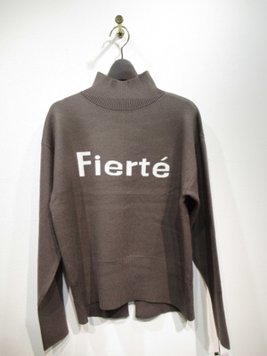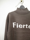 ドロップショルダー ハイネックのロゴ入りニット 後ろ下がり 後ろの中央裾スリット 手洗い可能